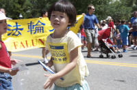 Les pratiquants ont transporté des banderoles, tandis que plusieurs pratiquants distribuaient des dépliants d’information aux spectateurs. Faisait parti également du défilé du Falun Gong, un magnifique char avec une fleur de lotus sur lequel les pratiquants faisaient la présentation des exercices. La belle musique de Pu Du et de Jishi était jouée par un système de son comme la foule saluait et acclamait.