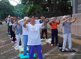 I l se lève peu après 4h du matin, Après avoir pratiqué les exercices dans le parc, il étudie le livre Zhuan Falun, écrit par Maître Li, avec d'autres pratiquants. Lorsqu'il rentre chez lui, il est passé 9h. Chaque jour, les pratiquants font les exercices de Falun Gong dans les parcs à travers le monde. M. Chen fait cela quotidiennement depuis maintenant 5 ans.
