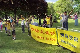 Les 20 et 21 juin 2009, le 21e Festival international des bateaux dragons de Center Island à Toronto a attiré plus d’une centaine de milliers de visiteurs. Comme par les années précédentes, les enseignants et les élèves de l’école Minghui de Toronto sont venus à Center Island pour clarifier la vérité et faire la promotion du Falun Dafa pendant le Festival.