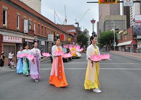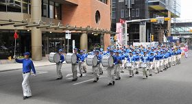 Mme Ye a immigré au Canada, il y a dix ans. Les larmes lui coulaient sur le visage en regardant le défilé des pratiquants de Falun Dafa. Elle a suivi le défilé jusqu'à sa destination et ne voulait pas partir.. Elle a félicité le groupe du Falun Gong. «Quelle beauté! J'ai vu des étrangers dans votre groupe!»
