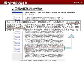 M. Matas a explicitement souligné que, bien que la Chine ait mis en œuvre, le 1er mai 2007, l'Ordonnance sur la Transplantation d'Organes Humains', ce qui est stipulé dans cette ordonnance n'implique aucune restriction sur l'armée du PCC, parce que les hôpitaux où ont lieu les prélèvements d'organes sont principalement des hôpitaux connectés à l’armée, et qui ont en même temps des canaux directs pour les transactions criminelles avec les prisons, les départements de police et les départements de sécurité nationale.