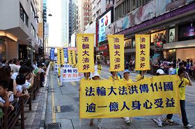 De nombreux touristes de Chine ont été touchés par le défilé. Ils ont pris quantité de photos. Quelques dames voyaient cette scène de défilé du Falun Gong pour la première fois, et ont dit que cela avait une grande signification. Hong Kong a la liberté de parole, mais il est impossible de voir une chose pareille en Chine.