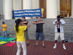 Quand les gens ont entendu qu'ils pouvaient se joindre à la méditation pour quelques minutes pour soutenir les efforts à mettre fin à la persécution, certains se sont joints à la méditation avec les pratiquants.