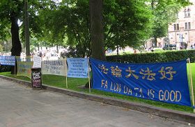 Ils ont placé des photos de leurs compagnons de pratique qui ont été torturés à mort en Chine le long d'un mur de l'église. Les touristes de différents pays du monde qui se sont arrêtés ont été stupéfaits. Ils avaient du mal à croire que dans le monde d'aujourd'hui, une persécution aussi brutale ait pu se produire.