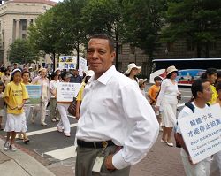 Peter, originaire de Corée, est venu aux États-Unis il y a plus de trente ans, et travaille dans un ministère. Il se tenait dans la rue et regardait calmement le défilé du Falun Gong. Il a appris le chinois lorsqu’il était enfant, ainsi il pouvait comprendre les messages sur les banderoles et les panneaux des pratiquants. Peter a dit au journaliste qu’il avait lu beaucoup d’informations sur ce sujet, et qu'il avait une impression favorable du Falun Gong. Il a dit que c’était une bonne façon de protester contres les atrocités du PCC.