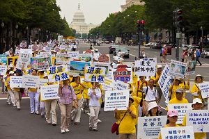 Près de 2 500 pratiquants de Falun Gong du monde entier se sont réunis à Washington DC le 17 juillet 2009, quelques jours avant le dixième anniversaire du début de la persécution du Falun Gong et la résistance pacifique des pratiquants de Falun Gong. Après le rassemblement et la veillée aux chandelles qui ont eu lieu le 16 juillet, les pratiquants sont descendus dans les rues une fois de plus, pour faire une grande marche afin de demander à plus de gens de porter attention à la persécution du Falun Gong en Chine, de clairement voir la nature perverse du Parti communiste chinois et de mettre fin à la persécution du Falun Gong par le PCC.