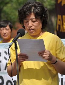 Dr. Liu Minnan, une pratiquante du Falun Gong, prononce un discours