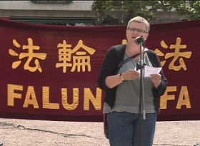 Interviewée par les médias, elle a dit "Je prête une attention toute particulière au Falun Gong. Si je ne le pratique pas moi-même, je sais les terribles épreuves qu'ils endurent. Je considère de mon devoir de venir ici et de m'exprimer à cette occasion. Tant que le régime chinois ne respectera pas les droits humains je combattrais pour eux (Falun Gong) Elle a également mentionné que les médias occidentaux n'avaient pas couvert les dix ans de l'effroyable persécution. Elle a encouragé chacun à faire tout en son pouvoir pour défendre la liberté de croyance et de parole.