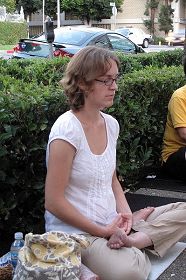 L’animateur de la manifestation, Dr Qu Zheng, a dit : « Plus de trois mille pratiquants ont perdu la vie à cause de la persécution depuis le 20 juillet 2009. Des centaines de milliers ont été jetés en prison et dans des camps de travaux forcés. Ils ont été torturés et contraints à faire des travaux forcés. L’avocat Maître Gao a été brutalement persécuté pour s’être exprimé en faveur des pratiquants de Falun Gong. Le PCC a mobilisé le système policier et des agents spéciaux pour mettre en œuvre la persécution. Il contraint les gouvernements et des compagnies des autres pays à leur apporter une aide en utilisant des mesures économiques et diplomatiques. Le PCC persécute non seulement le Falun Gong, mais aussi tout le monde. Ce n'est que parce que les pratiquants de Falun Gong dénoncent les mensonges du PCC que le PCC a investi les ressources de toute la nation pour mener à bien la persécution. Toutefois, le mensonge et la violence ne pourront jamais gagner. La paix de la nation et la renaissance de la conscience et de la moralité des gens dépendent de la fin de la persécution. »