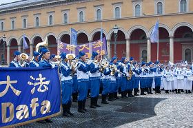 Malgré la pluie, la marche a eu lieu comme prévu. La Fanfare Divine Européenne ouvrait le défilé qui a attiré l’attention de nombreux passants qui se sont arrêtés pour regarder. Certains se sont joints à la marche et l'ont accompagnée jusqu'à la fin.