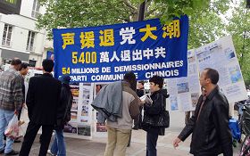 Le 22 juin, le Centre d’aide aux démissions du PCC a organisé un rassemblement à Belleville, Paris, en soutien aux 56 millions de gens qui ont quitté le PCC et ses organisations affiliées. Ils ont aussi offert aux Chinois vivant à Paris, leurs services pour les aider à quitter le PCC.
