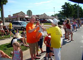 Le long du parcours du défilé, des pratiquants ont distribué des dépliants du Falun Dafa à la foule. Beaucoup les ont lus sur place. Un résident était ravi de voir un char du Falun Gong cette année. Il a dit qu’il avait entendu parler du Falun Gong l’année dernière. Ils étaient contents d’entendre que les sessions d’enseignement dans un parc local étaient gratuites. Un jeune homme était très heureux et surpris de savoir que toutes les instructions pour les exercices et les enseignements étaient disponibles en ligne pour être téléchargés gratuitement.