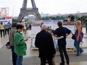 Michel, un journaliste, a filmé la pratique des exercices du Falun Gong en vidéo puis a dit "Ce que vous faites est vraiment bien. Je ne sais pas ce qui se passe en Chine, mais l'important est que vous soyez ici, sur la place des droits de l'homme, à attirer l'attention des gens. C'est très significatif. La Tour Eiffel attire tant de monde. Vous êtes très dévoués à votre cause et utilisez votre temps libre pour venir informer les gens. Je suis heureux de vous voir. Il a demandé une information à propos du Falun Gong et une copie de la version française des Neuf Commentaires sur le Parti communiste puis a dit : "je vais les lire en rentrant à la maison. C'est une histoire importante". En partant il a laissé sa carte espérant garder le contact avec les pratiquants de Falun Gong.
