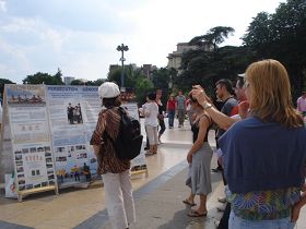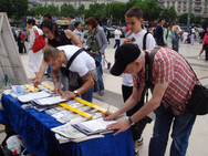 Pas mal de gens ont été intéressés par la pratique après avoir regardé la démonstration des exercices et ils se sont renseignés sur les adresses des points de pratique. De nombreuses personnes saisies par le contraste entre l'énergie paisible des exercices et l'information sur la persécution ont semblé comprendre et sont spontanément venues signer la pétition condamnant la persécution.