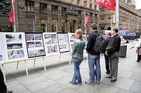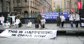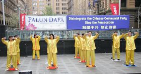 Le 30 juin 2009 sur la Place Martin, au centre ville de Sydney, les pratiquants de Falun Dafa ont disposé des banderoles de clarification de la vérité pour présenter le Falun Gong et dénoncer la persécution en Chine.