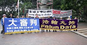 A l’autre bout de la Place Martin, des pratiquants de Falun Gong se rassemblaient devant la Cour Suprême. Le procès initié par la pratiquante de Falun Gong australienne Zhang Cuiying contre l’ancien président Jiang Zemin verra une autre audience se dérouler à la Cour Suprême le 20 juillet. L’affaire dure depuis cinq ans et a suscité le soutien de nombreux Australiens. En quelques mois, elle a reçu 8,000 signatures en soutien au procès.