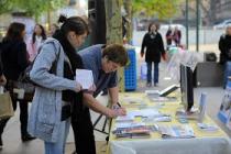 Le rassemblement Quittez le PCC a attiré beaucoup de monde. Apprenant la situation les gens signaient la pétition en soutien aux trois démissions, et réclamant la fin de la persécution du Falun Gong.