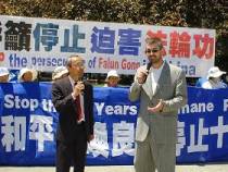 Chris Daly, un superviseur de San Francisco a participé au rassemblement et a prononcé un discours. Il a dit qu’il était très triste quand il pense aux pratiquants du Falun Gong qui sont persécutés en Chine et qu’il admire la persévérance des pratiquants. Il a dit : « En tant qu’ami du Falun Gong, je peux dire à tout le monde : Falun Dafa est bon ! Les principes de Authenticité – Compassion – Tolérance devraient être connus de tous. Nous condamnons les voyous qui persécutent le Falun Gong. À l’Hôtel-de-Ville de San Francisco, je vais toujours me prononcer en votre faveur. »