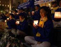 Au crépuscule, les pratiquants ont allumé des bougies à l’Union Square en souvenir des pratiquants qui sont morts des suites de la persécution et pour honorer la foi inébranlable des pratiquants du Falun Gong.