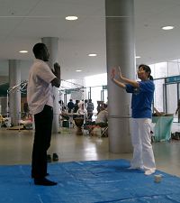 Le deuxième jour, le garçon est revenu pour aider à déplacer des boîtes et installer les panneaux d’affichage. Plus tard, il a pratiqué les exercices avec les pratiquants. Il a dit à sa sœur cadette : « Tu peux venir et te joindre à nous. C’est très bon pour ta santé. » Avant de partir avec sa mère, il a dit aux pratiquants : « Nous devons maintenant rentrer à la maison. On se reverra l’année prochaine. »