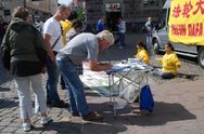 Dans l'après midi, les pratiquants sont arrivés à Aarhus, deuxième plus grande ville de Danemark. Ils ont clarifié les faits au centre ville et beaucoup de gens ont signé la pétition sans une hésitation. A plusieurs occasions, ils faisaient la queue pour apposer leur signature.