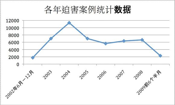 Le nombre total de cas documentés de persécution rassemblés par le centre de données de Minghui sont de 48.085 (entre le 1er juin 2002 et le 15 juillet 2009)