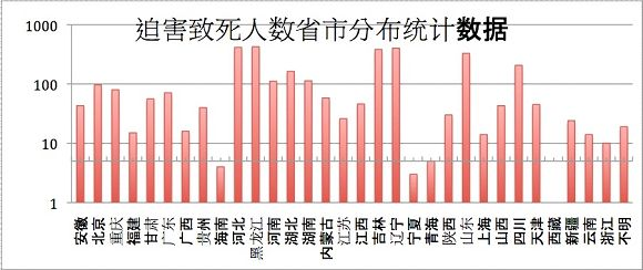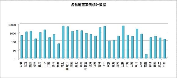 Le tableau suivant montre le nombre de cas documentés de persécution dans chaque province chinoise :