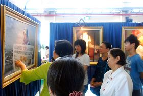 Le jour de l’exposition, un artiste local qui avait appris à propos de la persécution du Falun Gong par le Parti communiste chinois est venu visiter l’exposition avec plusieurs amis. Après avoir vu les tableaux, il s’est exclamé :« Les peintures sont tellement vivantes. »