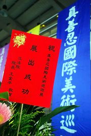 Le 2 août 2009, l’Exposition artistique internationale de Authenticité – Compassion – Tolérance, co-sponsorisée par l’Association du Falun Dafa taiwanaise et l’Association de la culture Xinsancai, s’est ouverte à l’école secondaire nationale de Mazu, exposant 45 peintures d’artistes professionnels chinois et occidentaux, eux-mêmes pratiquants de Falun Gong. L’exposition a touché de nombreux visiteurs. Le président de la République de Chine Ma Ying-jeou et le Premier Ministre Liu Chao-Shiuan ont tous les deux émis des lettres de bienvenue et de félicitations pour le succès de l’exposition artistique.
