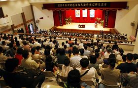 Des pratiquants de Falun Gong dans le nord de Taiwan ont organisé une conférence de partage d’expériences au Centre d’activités de la jeunesse de Chientan du 14 au 16 août 2009. À l’aube le 16 août, plus d’un millier de pratiquants ont fait les cinq exercices avec la musique. Peu après, la conférence de partage d’expérience a commencé.