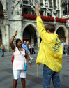 L'activité du Falun Gong sur Marien Platz attire de nombreux touristes et des Munichois |