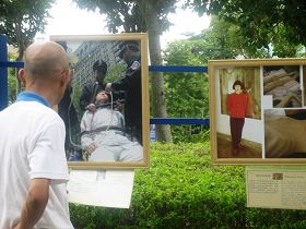 De l’autre côté de ‘Sinyi Plaza’, les pratiquants du Falun Gong ont exposé des photos de la traversée des 10 ans de résistance à la persécution. De nombreuses personnes ont eu une meilleure compréhension du Falun Gong, et ont été choquées de la violence utilisée par le PCC à l’encontre des pratiquants du Falun Gong.