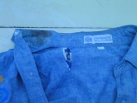 Des tâches de sang sur le côté droit de la veste sont clairement visibles. L’arrière de la veste a été déchiré sur 10 cm. Les trois boutons d’en haut ont été arrachés