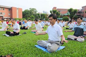 M. Chiu s'est joint aux exercices de groupe au cours d'une conférence de partage d'expériences du Falun Gong à Chien-tan, à Taïpeh, en août 2009