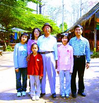 La famille Chiu et le beau-père (au milieu), qui a récemment commencé à pratiquer le Falun Gong.