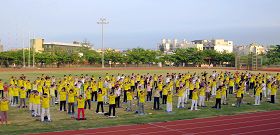 À 4h50 du matin, les pratiquants se sont réunis sur le terrain de jeu devant l'hôtel et ont fait les cinq exercices. Comme le soleil se levait graduellement, beaucoup de résidants sont venus au terrain de jeu pour s'exercer. Comme ils ont vu les pratiquants faire les exercices de Falun Gong, certains ont commencé à imiter les mouvements. M. Li est venu du canton de Yunlin. Il avait mauvais caractère et un comportement épouvantable avant de pratiquer le Falun Gong. Beaucoup de personnes avaient trop peur d'aller dans son magasin. Maintenant, il a amélioré son caractère en suivant les enseignements du Falun Dafa. Il parle paisiblement et son visage semble amical.