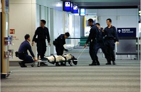Le Gouvernement de Hong Kong a souvent expulsé violemment des pratiquants de Falun Gong. Sur la photo, les fonctionnaires du gouvernement ont attaché un pratiquant de Falun Gong avant de le porter à bord d’un avion. |