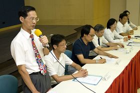 A propos du verdict de la Cour d'Appel de Hong Kong sur une affaire impliquant l'expulsion de quatre pratiquants de Falun Gong, Chang Chingshi, président de l'Association de Falun Dafa à Taiwan, et quatre plaignants, Chu Wanchi, Liu Hsiaolan, Chang Chenyu et Li Liching, ont tenu une conférence de presse avec les avocats Lin Fengcheng et Chuang Shengrong. Ils ont critiqué la Cour d'Appel pour avoir cédé à la pression venant des autorités chinoises et prononcé un verdict injuste.