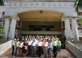 Li, Directeur de l'Hôpital de Miaoli et son épouse en vacances à Hongchun et le Directeur Wu d'un Hôpital de Hongchun (premier en partant de la gauche) écoutent les explications du guide.