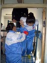 On the evening of May 2, 2009, Ms. Liu hand-copied Zhuan Falun and clarified the truth to guard Zhang Zhuohui. However, Zhang not only would not to listen to what Ms. Liu told her, but she also locked Ms. Liu up in a small storage room. The labor camp uses this room to torture practitioners. Two metal stands are placed on two sides of the room. Zhang first forcibly stretched Ms. Liu's hands to the extreme opposite directions, and then handcuffed her to the metal stands. Ms. Liu was immobilized like this from the evening of May 2 until the afternoon of May 4, for 53 hours. She had to stand, stretched between the two metal stands for this entire time. She was forbidden to eat, use the toilet, and was deprived of sleep during this period.