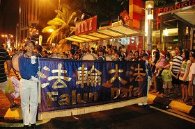 La fanfare de la Terre divine composée de plus de quatre-vingt pratiquants de Falun Gong de Malaisie et de Singapour, a organisé un défilé à Penang, les 26 et 27 décembre. Leur défilé ordonné et la musique solennelle ont eu un impact positif sur les résidents, propageant les nouvelles du Falun Dafa pendant les vacances de Noël.