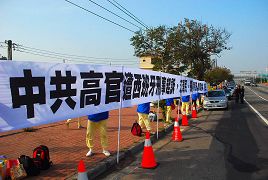 Chen Yunlin, président de l’Association pour les relations à travers le détroit de Taiwan, a visité Taiwan en provenance de la Chine continentale le 21 décembre. À l’aéroport de Chingchuankang, il a rencontré des pratiquants du Falun Gong qui dénonçaient pacifiquement la persécution du Falun Gong en Chine. Les pratiquants ont déployé des banderoles où on pouvait lire : « Arrêtez la persécution du Falun Gong.»