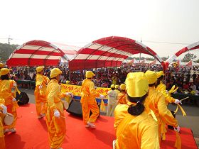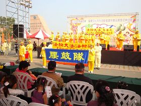 Les 26 et 27 décembre 2009, le comté de Kaohsiung a organisé son festival culturel annuel à l’esplanade devant le bâtiment de l’Administration du réservoir. Sur invitation, les tambourins à ceinture du Falun Gong et le groupe de danse des fées célestes ont participé au défilé le long des rues animées et se sont produits sur la scène.