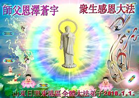 Les pratiquants de Falun Dafa du district de Donggang, Rizhao, province du Shandong, souhaitent respectueusement au vénérable Maître une Bonne et Heureuse Année !