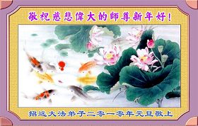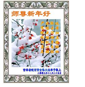 Un pratiquant d’une famille de 38 (Sept sont des pratiquants, les restes sont de support pour Dafa) de la province du Shandong, souhaite respectueusement au vénérable Maître une Bonne et Heureuse Année !