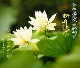Les pratiquants de Falun Dafa du groupe d’étude de la Loi de la ville de Dazhou souhaitent respectueusement au vénérable Maître une Bonne et Heureuse Année !