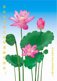 Les pratiquants de Falun Dafa et leur famille de la ville de Jiamusi, province du Heilongjiang, souhaitent respectueusement au vénérable Maître une Bonne et Heureuse Année !