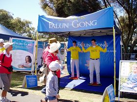 Des pratiquants locaux du Falun Gong ont participé au Spectacle annuel agricole de Brunswick, le 23 octobre, à Brunswick, Australie. Brunswick est à environ 100 milles de Perth, Australie de l’ouest. Plus de quinze mille personnes viennent au spectacle agricole à chaque octobre.