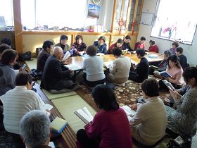 Les pratiquants du Falun Gong lisent Zhuan Falun en japonais. |