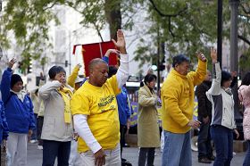 La veille de la Conférence de la Loi, soit le 6 novembre, les pratiquants ont organisé une pratique en groupe et une marche. Après la pratique en groupe, la marche est partie de la Tour d'eau, a passé à travers le très affairé boulevard Michigan et a atteint sa destination, le Consulat chinois. De nombreuses personnes regardaient le long du défilé, lisant attentivement les messages sur les banderoles dénonçant la persécution faite par le PCC, et quelques personnes ont même applaudi pour exprimer leur soutien au Falun Gong. Les pratiquants ont de nouveau présenté les exercices en groupe devant le Consulat chinois, pour protester contre les onze années de la brutale persécution par le PCC.